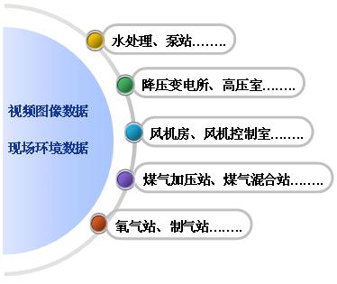 平臺將鋼廠水、電、風、煤氣、氧氣等重要場的圖像信息、溫度、濕度、現場環境的煙霧、明火隱患狀態相關信息通過數據接入平臺進行集中統一管理,建立數據共享機制,與鋼廠其它應用系統實現數據共享。