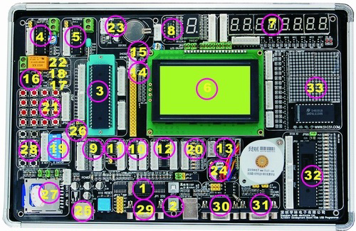 整機由以下數十個模塊組成,功能強勁令人嘆為觀止!集成了基本上所有單片機應用中可能遇到的功能模塊部份,你再也不必要去找其他零件,即可輕松完成您所需要的開發任務。我敢打賭這是你目前見到的功能強的51開發板(其中12864液晶率先成為系統的標準配置。僅此價格即超過百元!同時率先引入sd卡,485通信,can總線,漢字屏等等高端模塊,不象其他板子僅僅只能作幾個跑馬燈,數碼管實驗)